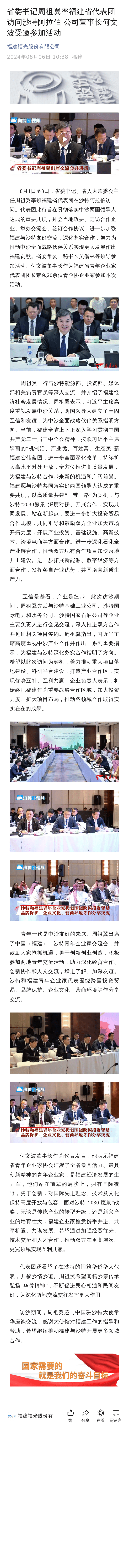 當前位置:新聞中心->省委書記周祖翼率福建省代表團訪問沙特阿拉伯 公司董事長何文波受邀參加活動